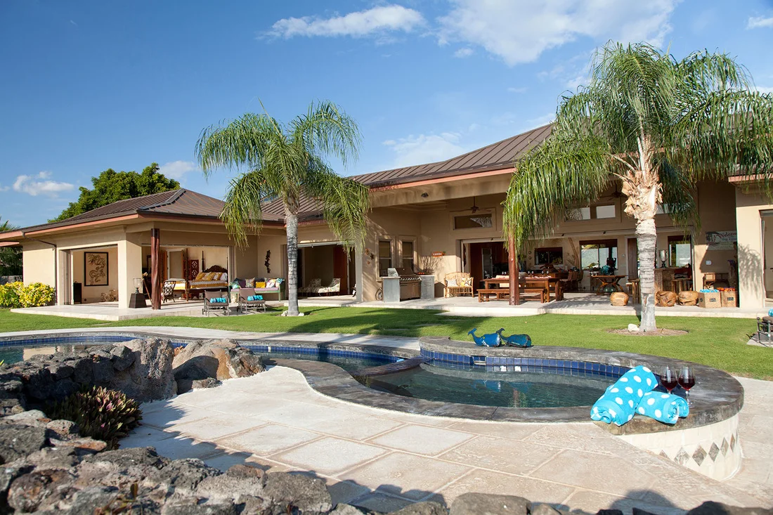 Expansive views of the Kohala Coastline greet you from the moment you walk in. The great room opens up to the pool / spa and 1,100 sq ft covered lanai.
